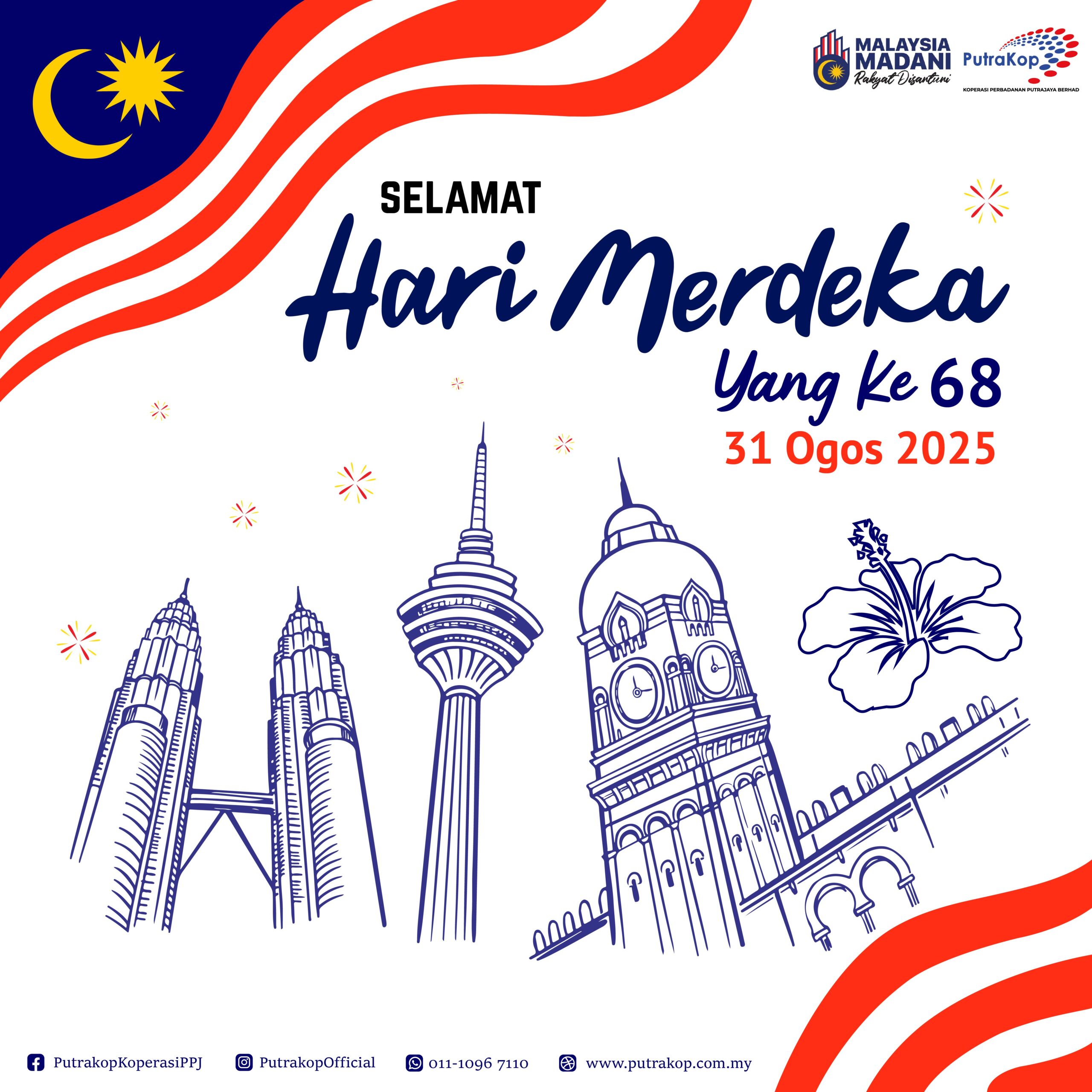 Barisan Anggota Lembaga Koperasi (ALK) dan Warga Kerja Putrakop mengucapkan selamat menyambut Hari Merdeka yang ke-68 pada 31 Ogos 2025 buat seluruh rakyat Malaysia.